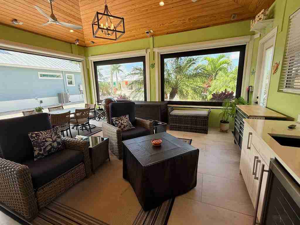 Welcome to a truly stunning coach house that combines luxury and comfort in all the right ways. Thoughtfully designed both inside and out, this property sits on an oversized 4,748 square foot lot surrounded by lush, beautiful landscaping—an absolute showstopper from the moment you arrive. One of the standout features is the custom 3-panel shutter, screen, and Eisenglass system that essentially doubles your living space. It’s perfect for relaxing outdoors in comfort, and it makes packing up for the season incredibly simple. Inside, the space is equally impressive. You’ll find one and a half stylish bathrooms, a cleverly designed upper storage area, and a separate workshop/storage space outside. The coach house comes fully furnished, so it’s ready for you to move in and start enjoying right away. There’s also plenty of outdoor space for entertaining or just spending time with your pets, and the layout is smart—allowing you to close off parts of the house while still giving renters or guests access to the half bathroom, which adds flexibility and convenience. There's a separate pergola with electric shade panels — perfect for alfresco dining when in residence and golf cart storage when you're off traveling. If you’re looking for a property that blends contemporary style, functionality, and that feeling of “home,” this is it.